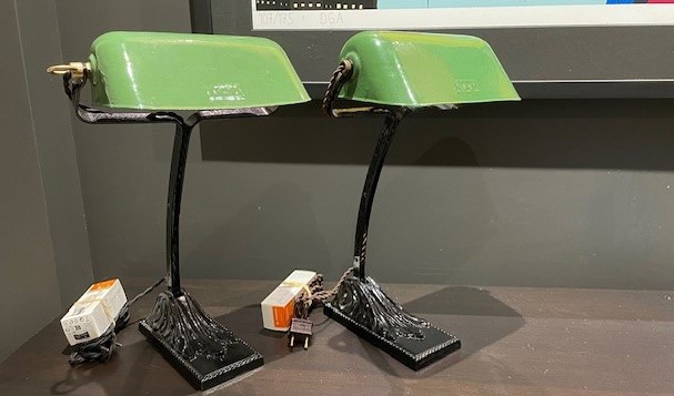 These are two beautiful examples of these sought-after variants of the classic bank lamps, with only some light signs of use.