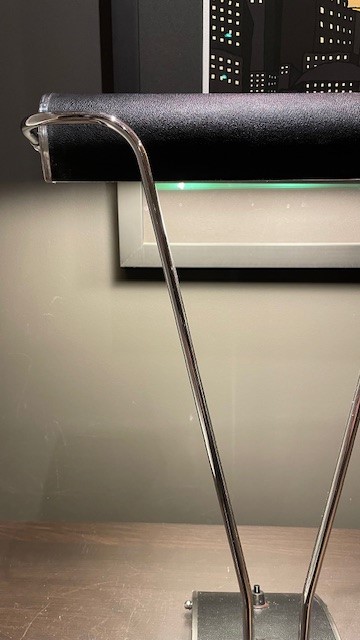 Jeg selger nå en nydelig, sort Jumo bordlampe, modell «Streamline» i Art Deco-stil.