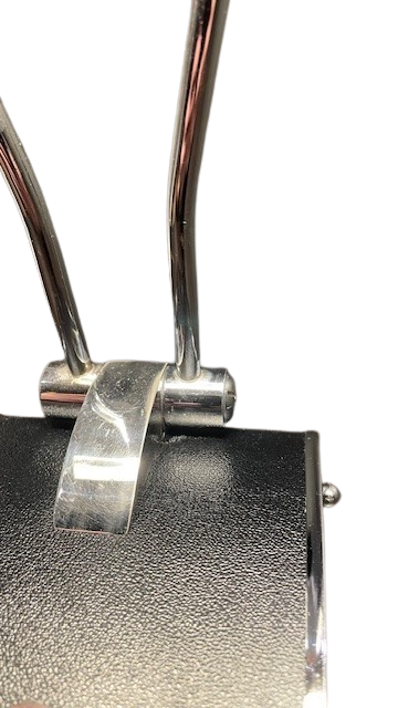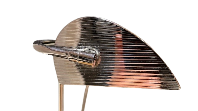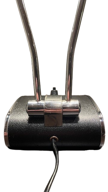 Denne modellen i sort med kromfinish er sjelden og spesielt raffinert. Linjene denne har, med sin strømlinjeformede og aerodynamiske design, blir spesielt godt fremhevet med de kromstripete sidene på basen og skjermen.
