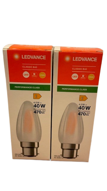 Lampen bruker 2 stk B22-pærer ( som følger med ), disse er nye Ledvance "Warm" LED pærer, som gir et meget godt og behagelig lys.