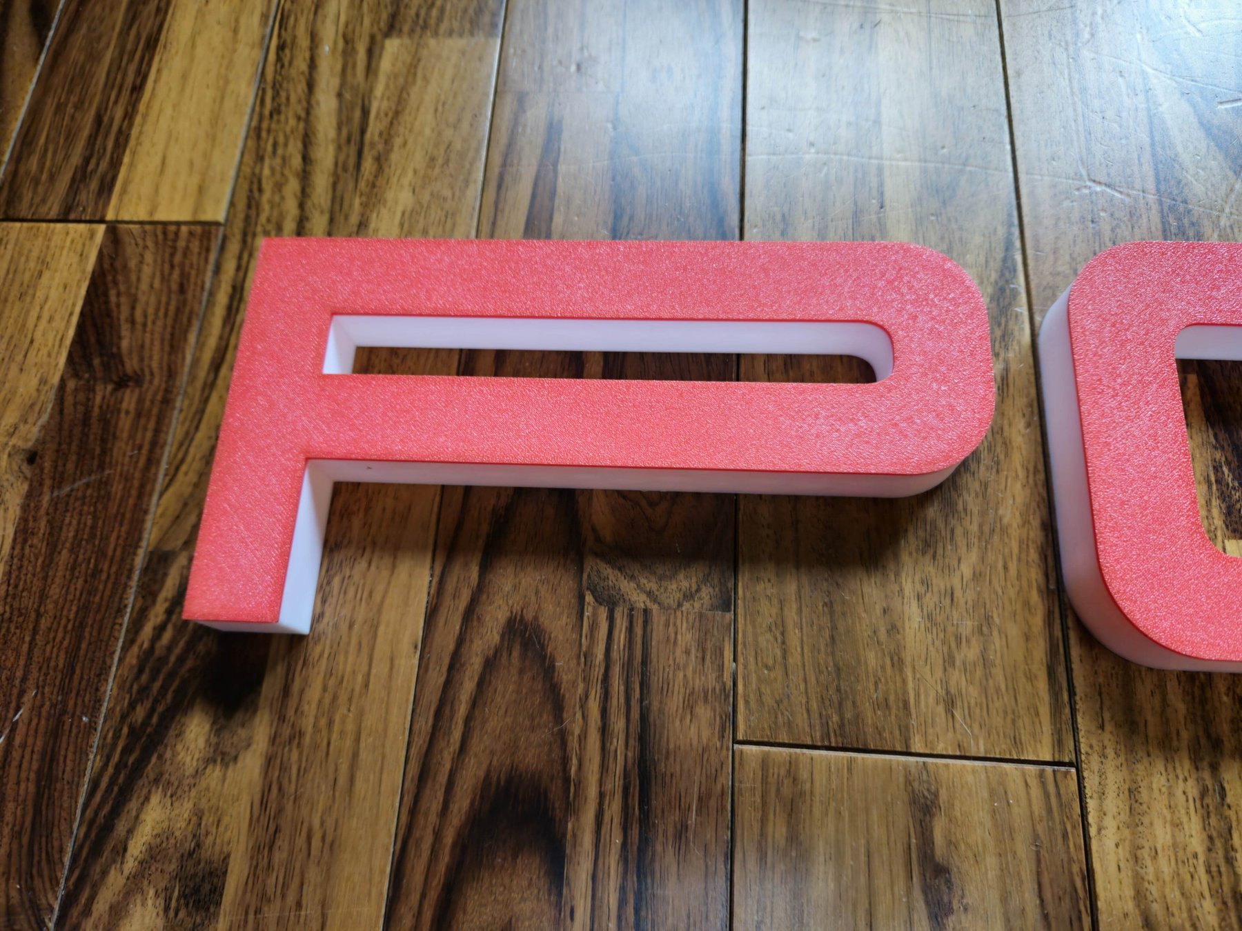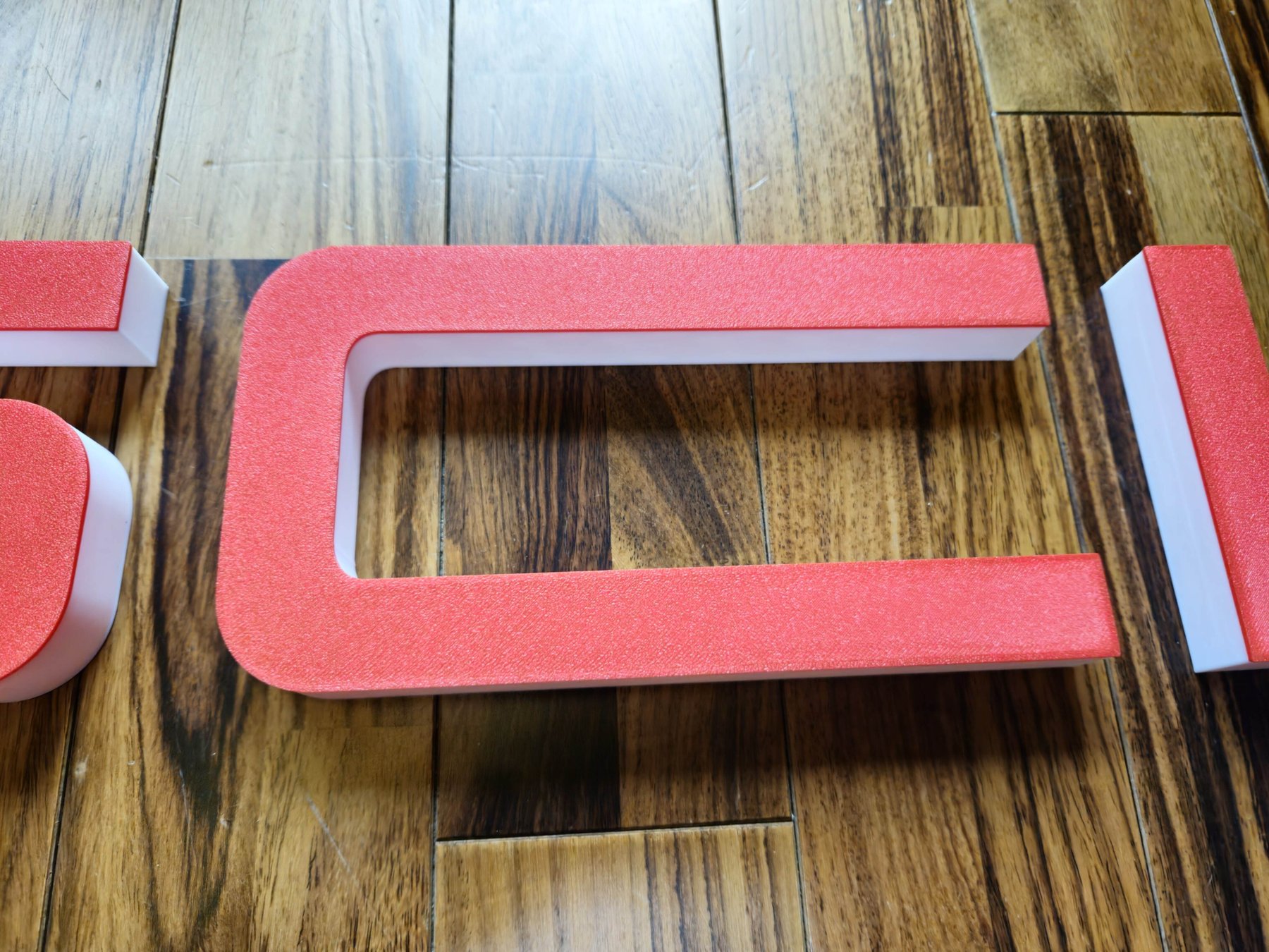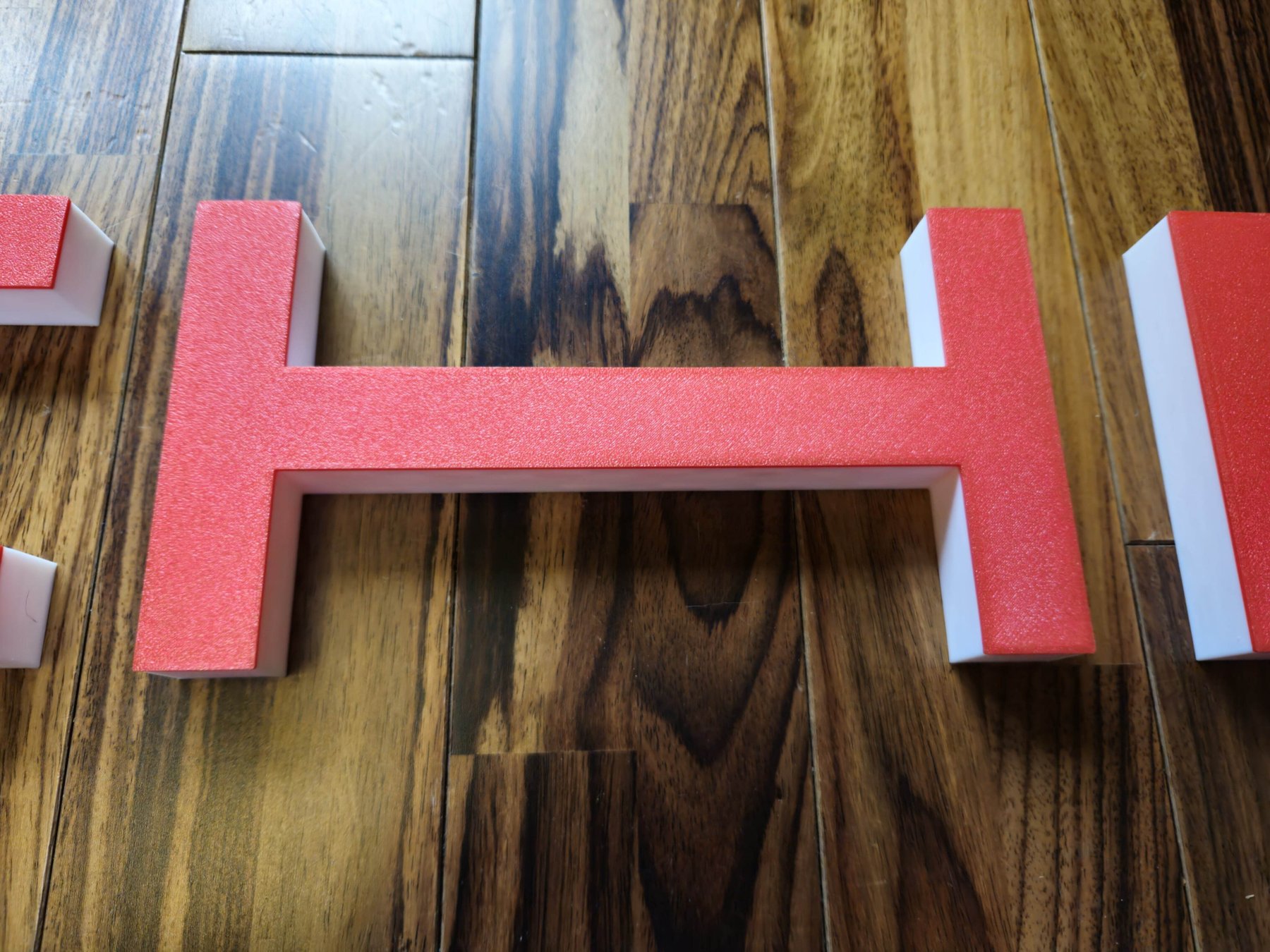 The letters are made with 3D printing of ABS plastic, with excellent production quality.