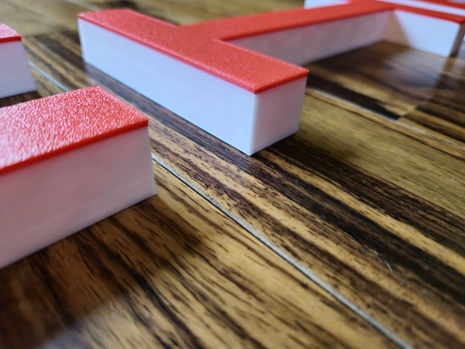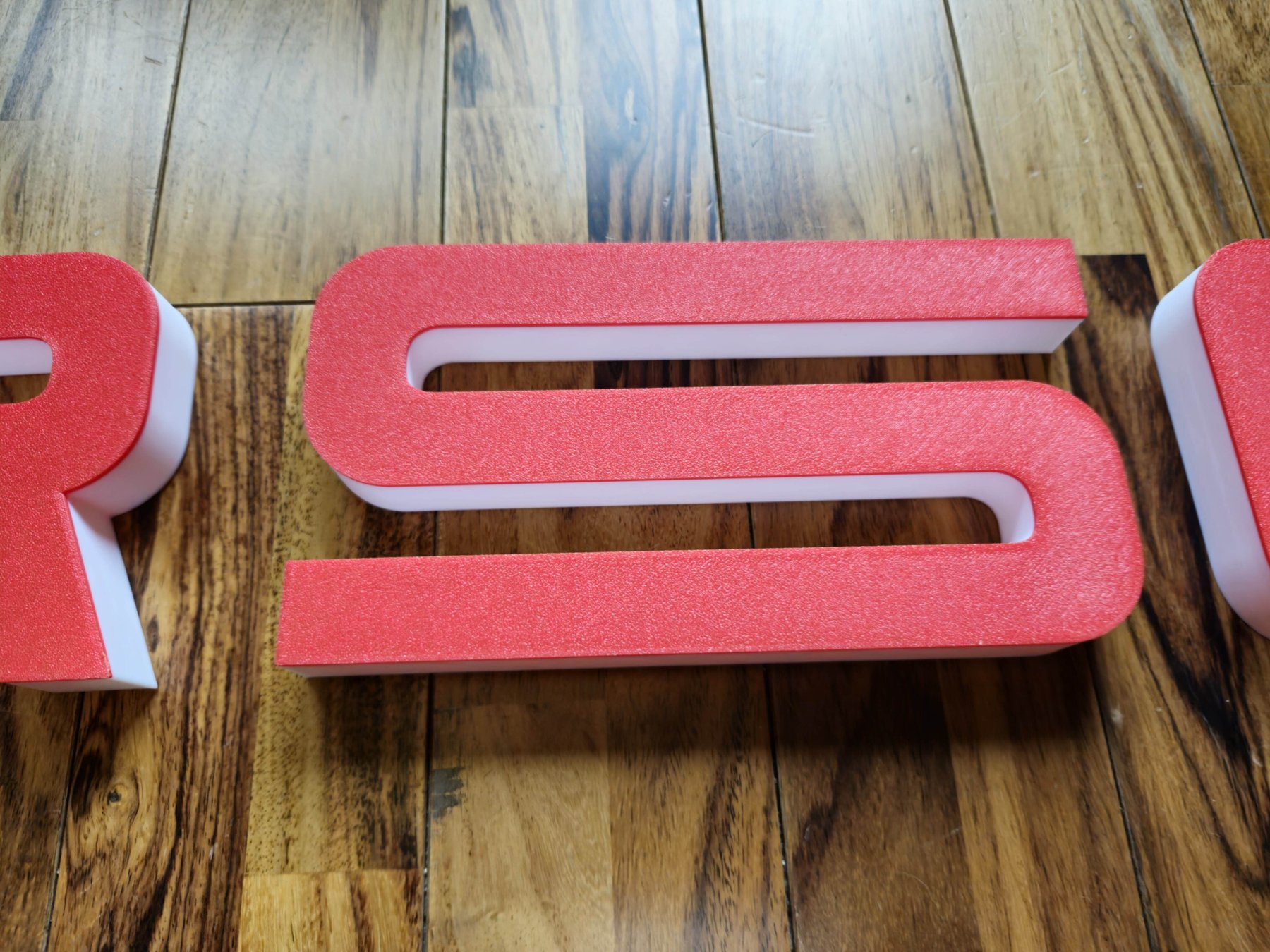 Each letter measures 22 cm x 12 cm x 5 cm. The letters are made with 3D printing of ABS plastic, with excellent production quality.