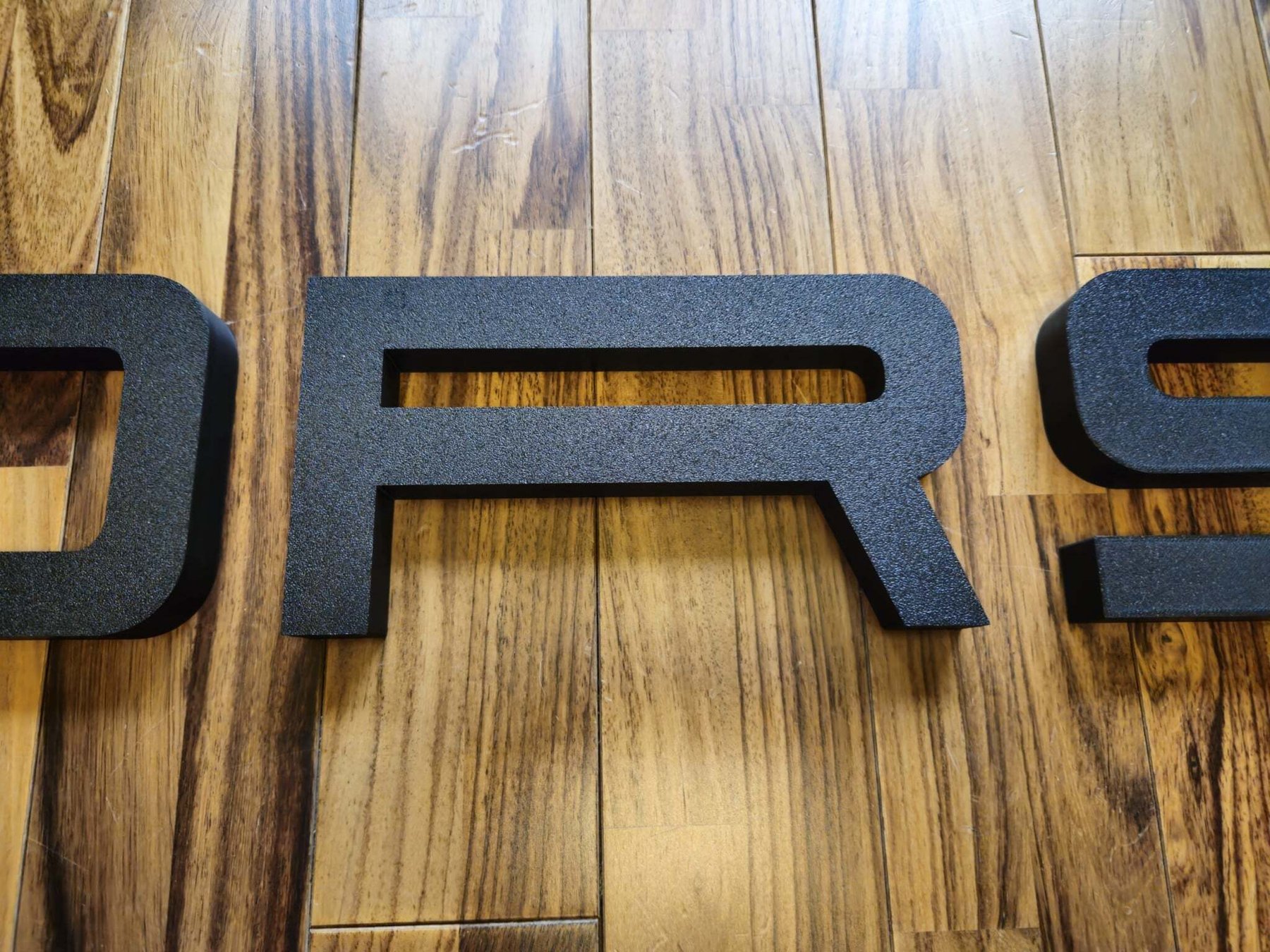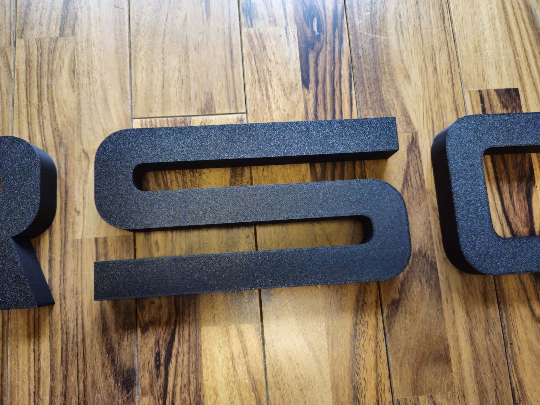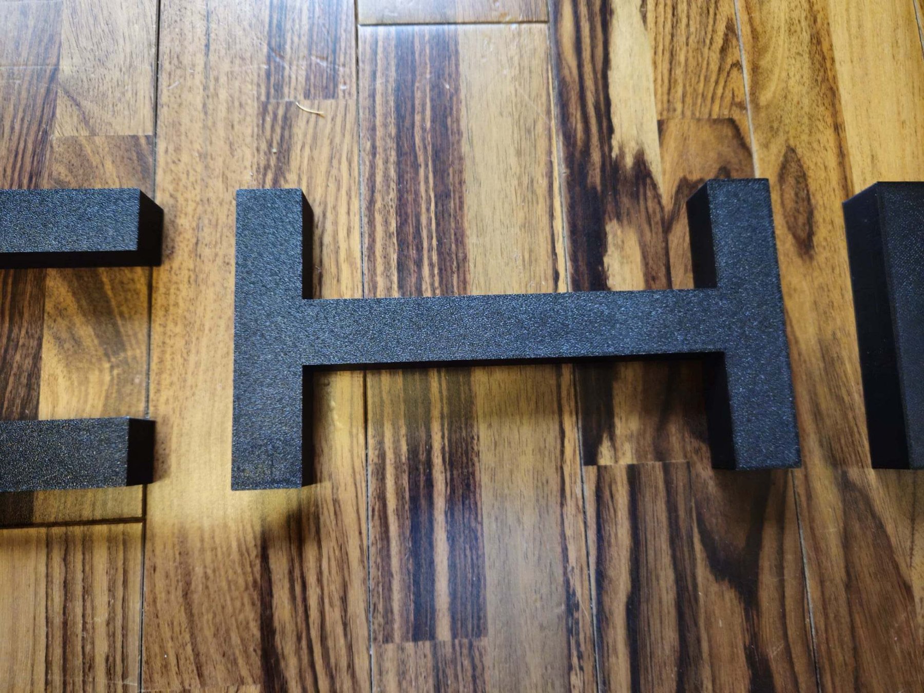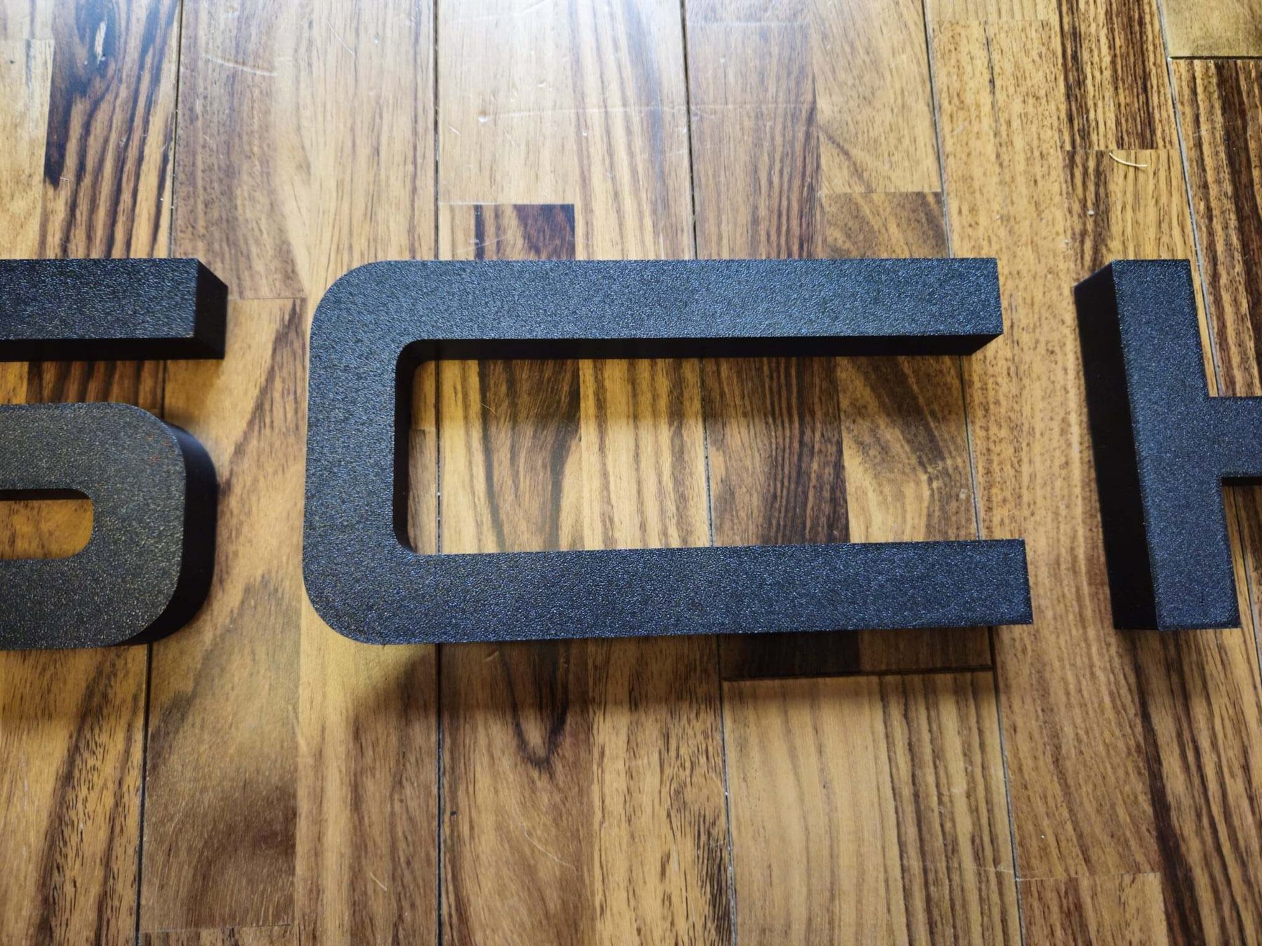 Bokstavene er laget med 3D-utskrift av ABS-plast, med