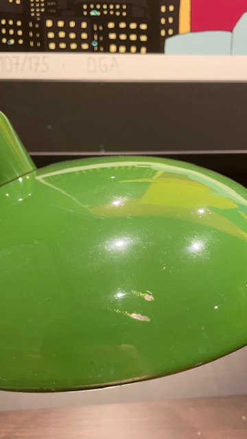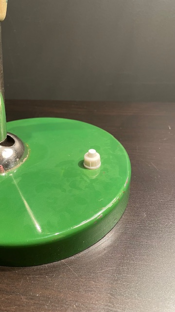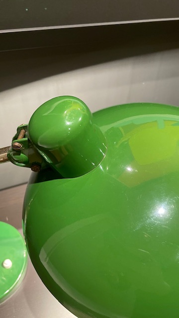 The lamp has been completely disassembled, cleaned and polished, checked and restored to an honest, vintage lamp. The electric is new throughout the lamp and it is equipped with a contemporary, twisted fabric cable ( 2 meters ) and a new earthed plug. All electrical work is carried out by a professional. It uses standard E27 bulb.