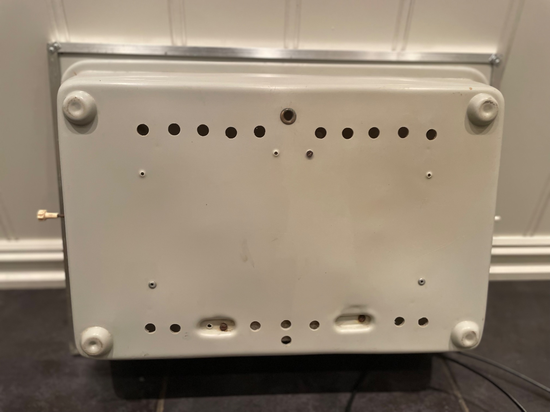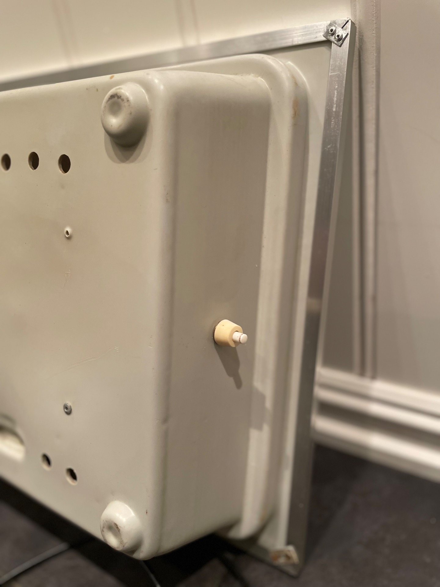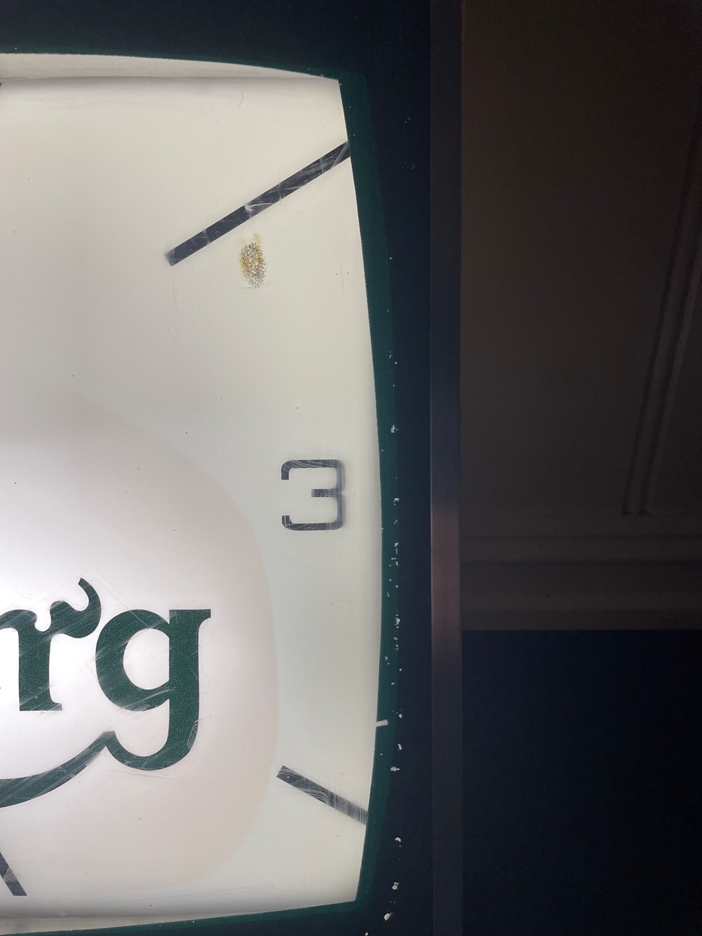 and has a plexiglass front with an aluminum edge. Somewhat scratched / worn plexiglass